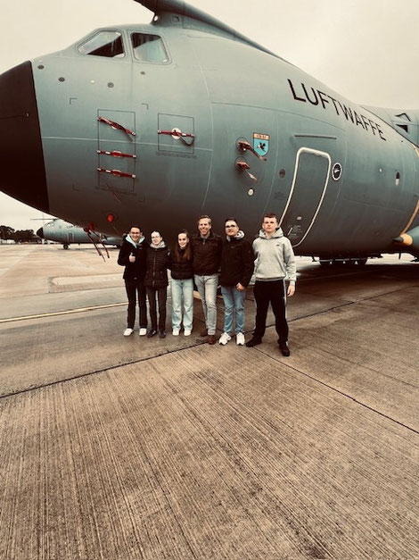 Kein Wunder also, dass nach all diesen spannenden Eindrücken schon etwas Wehmut aufkam, als die Jugendlichen am Freitagmittag ein letztes Mal den Start eines A400M aus der Nähe betrachten konnten. Doch die tollen Erlebnisse und Erfahrungen werden die Jugendliche noch lange in Erinnerung behalten und vielleicht findet die eine oder der andere als Fluggerätmechaniker:in, Fluglots:in oder Pilot:in den Weg zurück auf den Luftwaffenstützpunkt in Wunstorf. Herr Maretzke möchte auf jeden Fall gerne im kommenden Schuljahr wieder mit den Schülerinnen und Schülern des Drachenflug-Projektes für ein einwöchiges Gruppenpraktikum zum LTG62 zurückkehren.