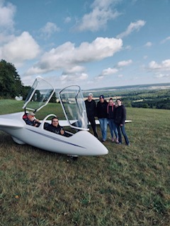 Kaum in der Luft wurden die Jugendlichen von dem unbeschreiblichen Gefühl des Fliegens übermannt und dank des Hangaufwindes konnten alle Schülerinnen und Schüler mehr als zehn Minuten in der Luft bleiben und auch selbst einmal das Flugzeug steuern. Der Blick über die frühherbstlichen Wälder und die Heimatorte der Jugendlichen war atemberaubend und gerne wären sie noch länger in der Luft geblieben. Doch dann stand der letzte Adrenalinkick an: Die Landung. Aufgrund der Luftwirbel hinter den Bäumen musste der Fluglehrer, der die Jugendlichen begleitet hat, in einer dynamischen Wende mit viel Fahrt auf die Landebahn zusteuern. Erst kurz vor dem Boden wurde der Flieger abgefangen, butterweich auf der Wiese aufgesetzt und rollte dann etwas holpernd zurück zum Startpunkt.